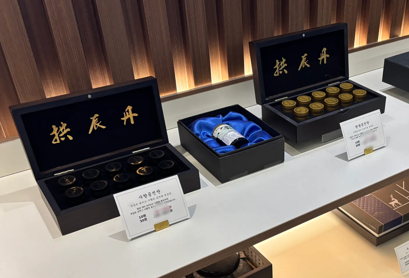 저희 한의원에 공진단과 경옥고를 전시하는 선반의 가장 아래층에는 사향통을 전시하고 있습니다. 실제로 원내에서 정품사향을 이용하여 원방공진단을 꾸준히 만들고 있는 증거입니다.