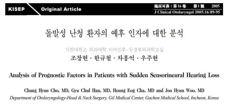 오늘은 가천대학교 의과대학 길병원에서 발표한 <돌발성 난청 환자의 예후 인자에 대한 분석> 논문을 바탕으로, 청력 회복의 가능성을 결정짓는 객관적인 지표들을 정리해 드리겠습니다.